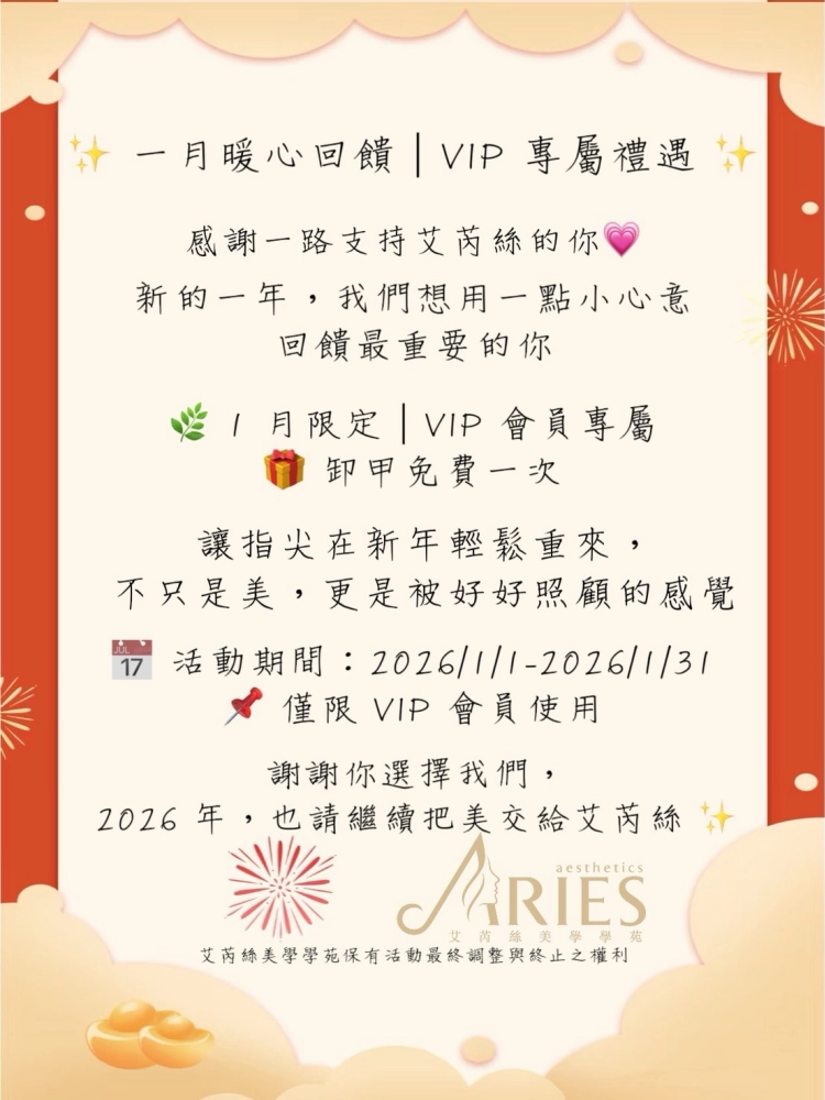 艾芮絲美學提供美甲、美睫、霧眉、霧唇、紋眼線、熱蠟美肌、男士除毛等服務,以自然、細緻、乾淨耐看為風格,專注每個細節與衛生流程,讓妳和你,都能帶著自信與好氣質走出去。 我們用真誠的方式聆聽、設計、細膩操作,希望每位女孩、每位男士來這裡,都能更自在、更有自信。 另外提供一對一與小班教學,協助學習者掌握技術重點、累積作品與紮實基礎,循序提升專業能力與後續接案信心。